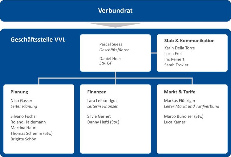 Oberstes Organ des VVL ist der Verbundrat, der für die strategische Führung verantwortlich ist. Er besteht aus sieben Mitgliedern, wovon drei Mitglieder vom Kanton und vier Mitglieder von den Gemeinden gestellt werden.