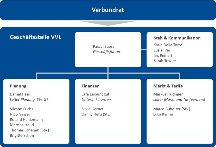 Oberstes Organ des VVL ist der Verbundrat, der für die strategische Führung verantwortlich ist. Er besteht aus sieben Mitgliedern, wovon drei Mitglieder vom Kanton und vier Mitglieder von den Gemeinden gestellt werden.